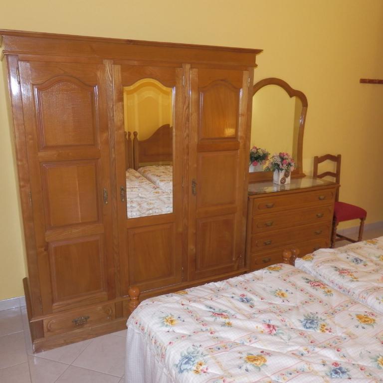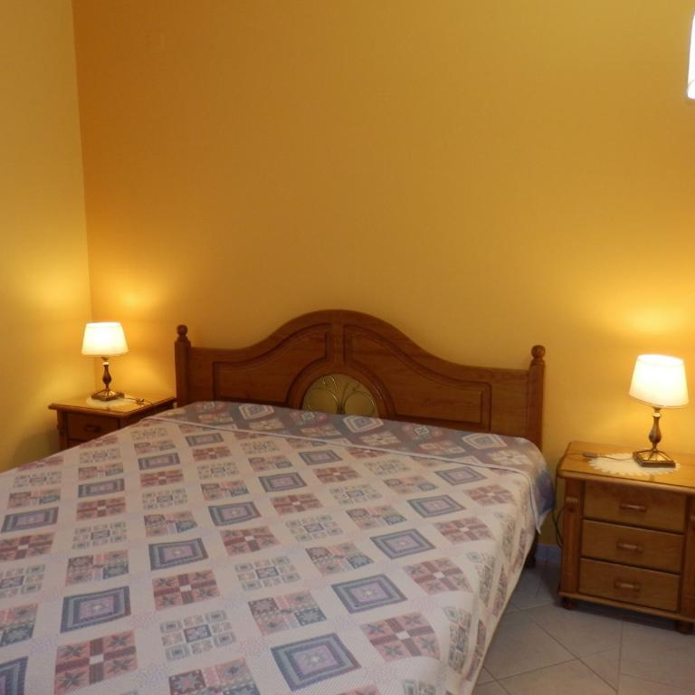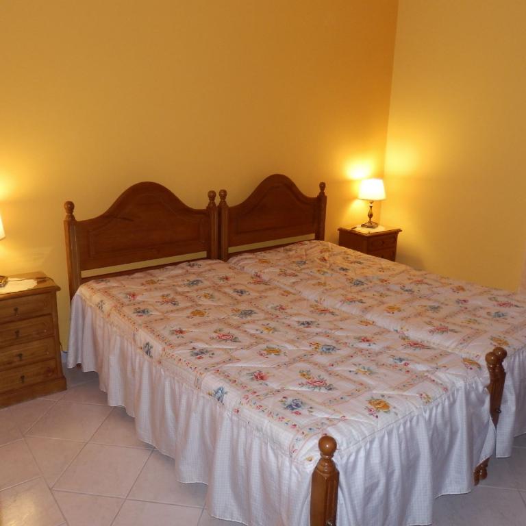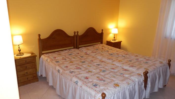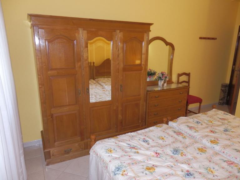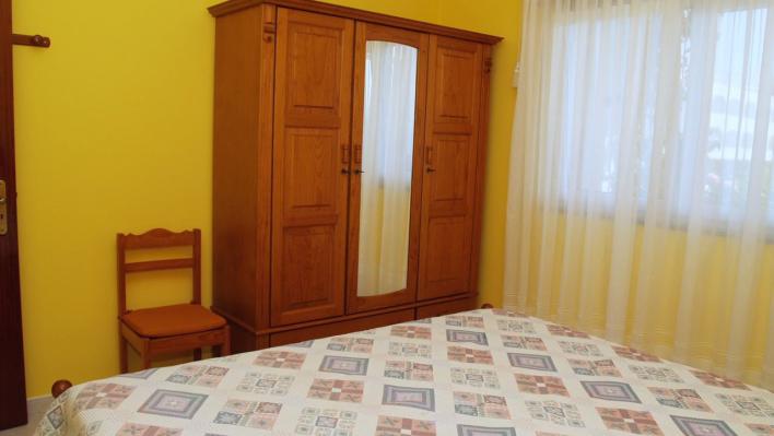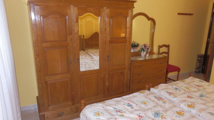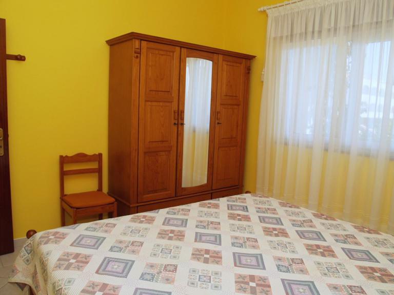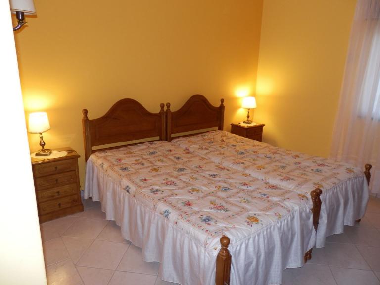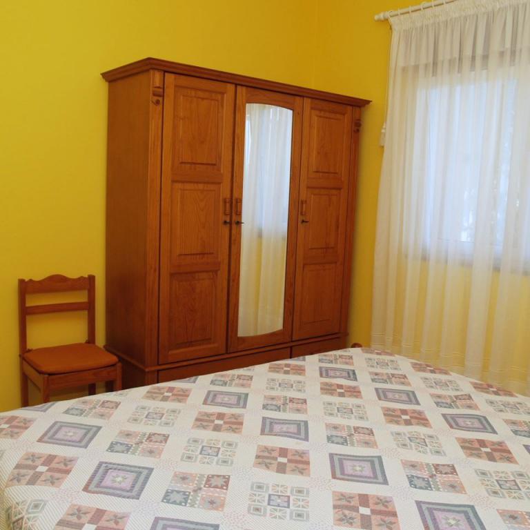 Das Apartment hat zwei Schlafzimmer. Eines mit einem Doppelbett und Eines mit zwei Einzelbetten. Der Blick aus dem Fenster des Doppelbettzimmers geht Richtung Süden. Das Fenster des Schlafzimmers mit den zwei Einzelbetten zeigt nach Norden. Durch ein Beistellbett / Schlafcouch finden hier bis zu fünf Personen Platz.